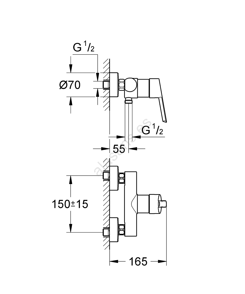 • Mezclador monomando de ducha de pared para una instalación sencilla.