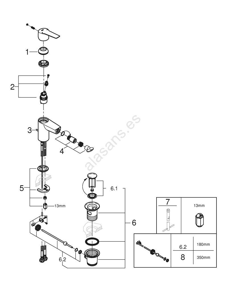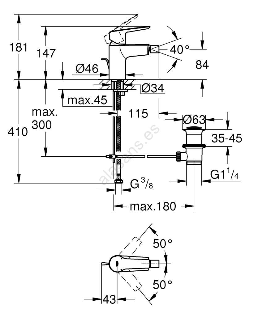• Aerador GROHE Water Saving con un caudal de 5,7 l/min que ahorra agua.