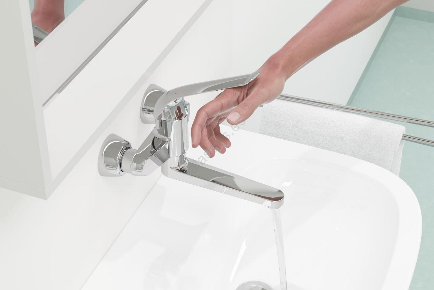 • Grifo monomando mural para lavabo, ideal para centros sanitarios y de atención.