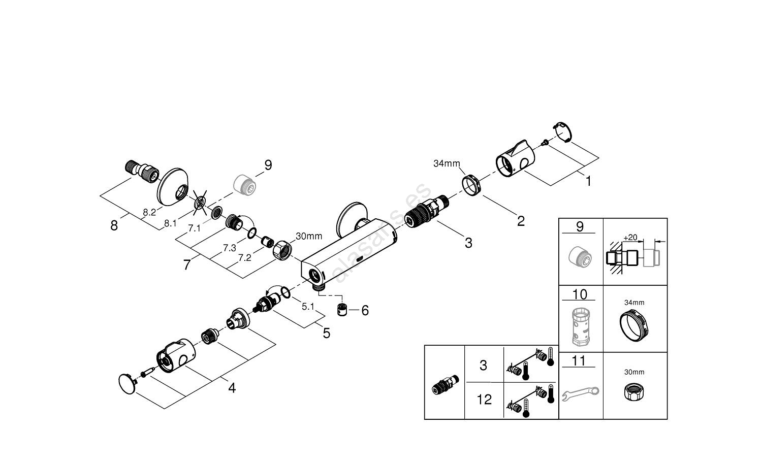 GROHE 34558000 - Mezclador termostático de ducha GROHTHERM 800 DN 15 cromo brillante