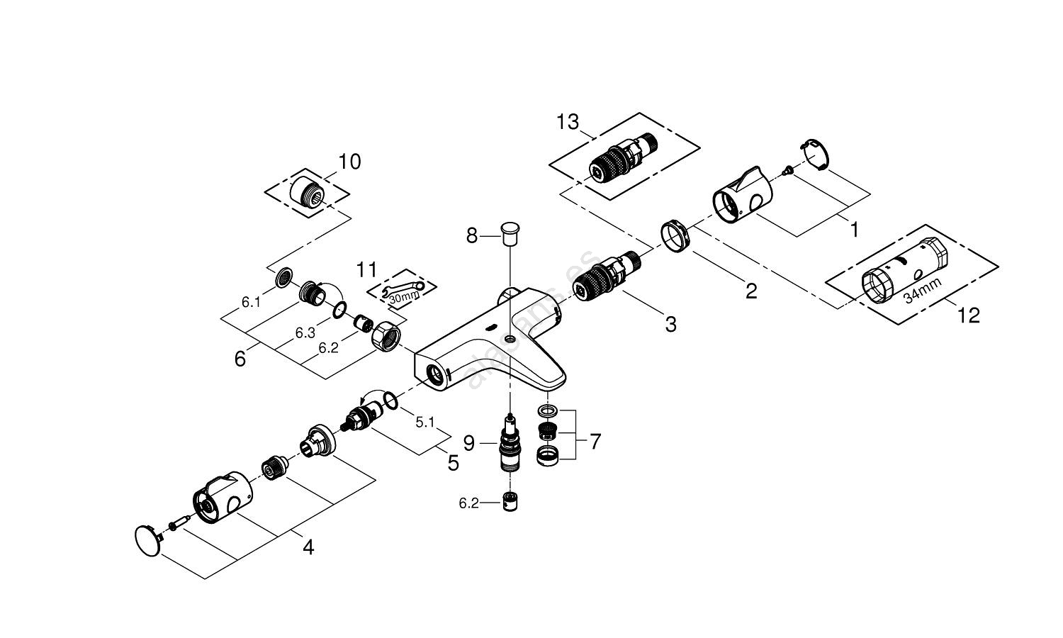GROHE 34756000 - Grifo termostático para bañera GROHTHERM 800 DN 15, cromo brillante
