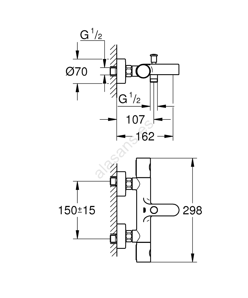 • Mezclador termostático de bañera de montaje mural para baños modernos.