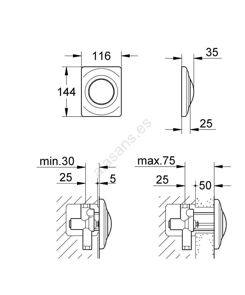 • Dimensiones compactas 116 × 144 mm para una instalación sencilla.