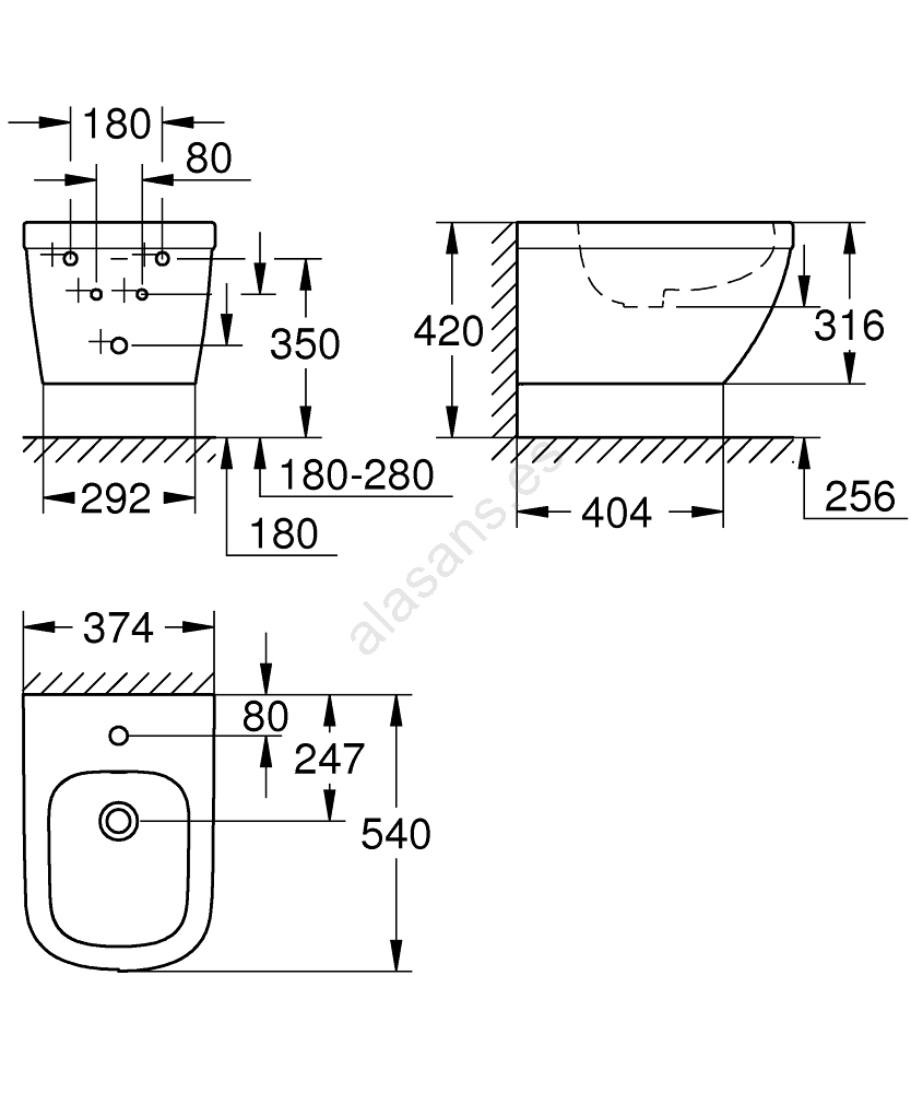 • El bidé dispone de un orificio para grifería y un rebosadero para un uso seguro.