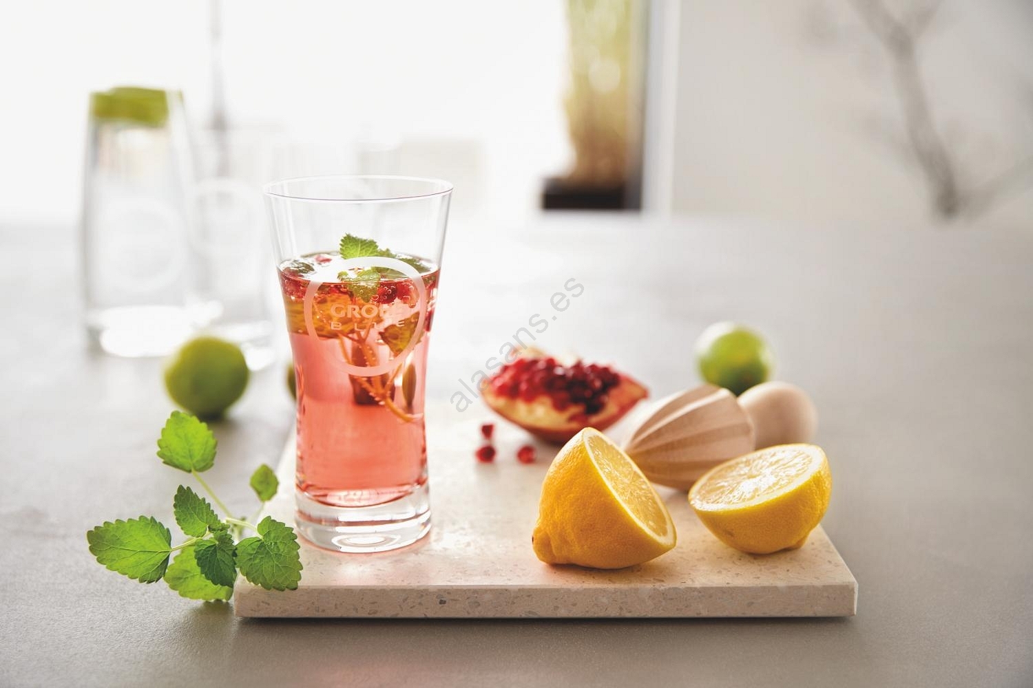 • Posibilidad de combinar con la jarra de vidrio de 1 litro GROHE Blue (40405001) para servir mayor cantidad de agua.