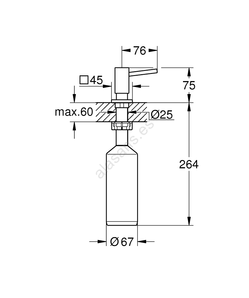 • Depósito rellenable con capacidad de 500 ml para jabones líquidos.