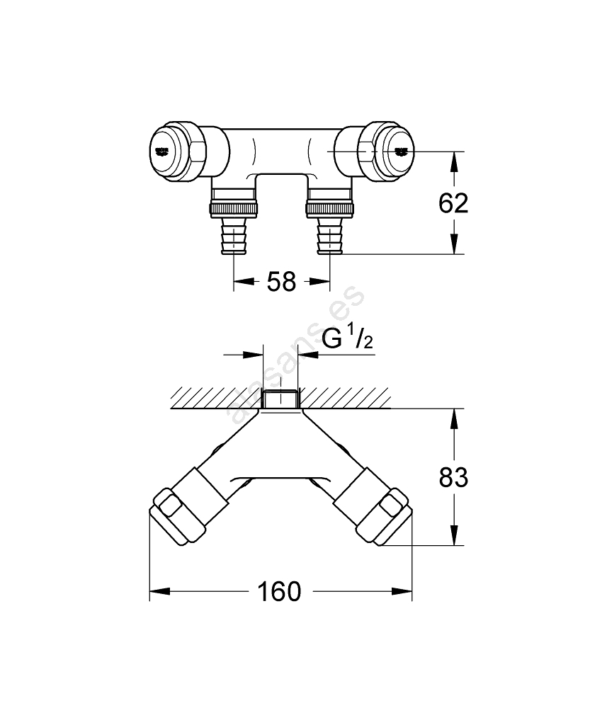 GROHE 41022000 - Válvula doble EGGEMANN DN 15, cromado brillante