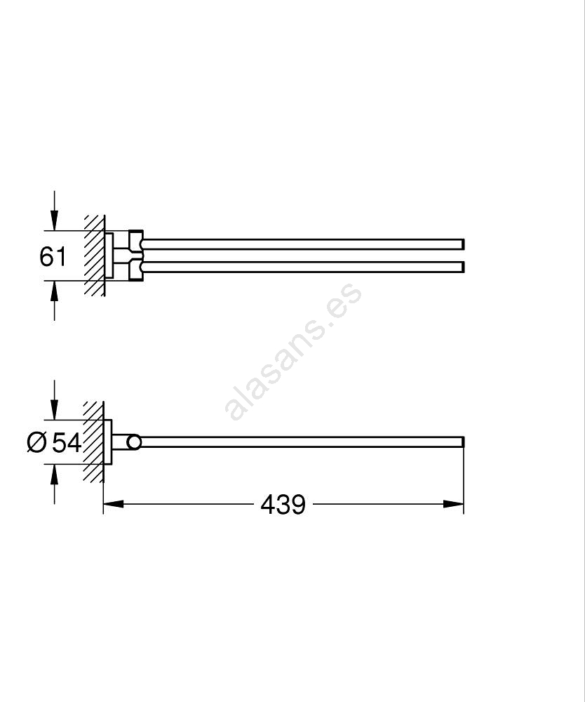 • Longitud total de 439 mm que ofrece espacio suficiente para colgar las toallas.