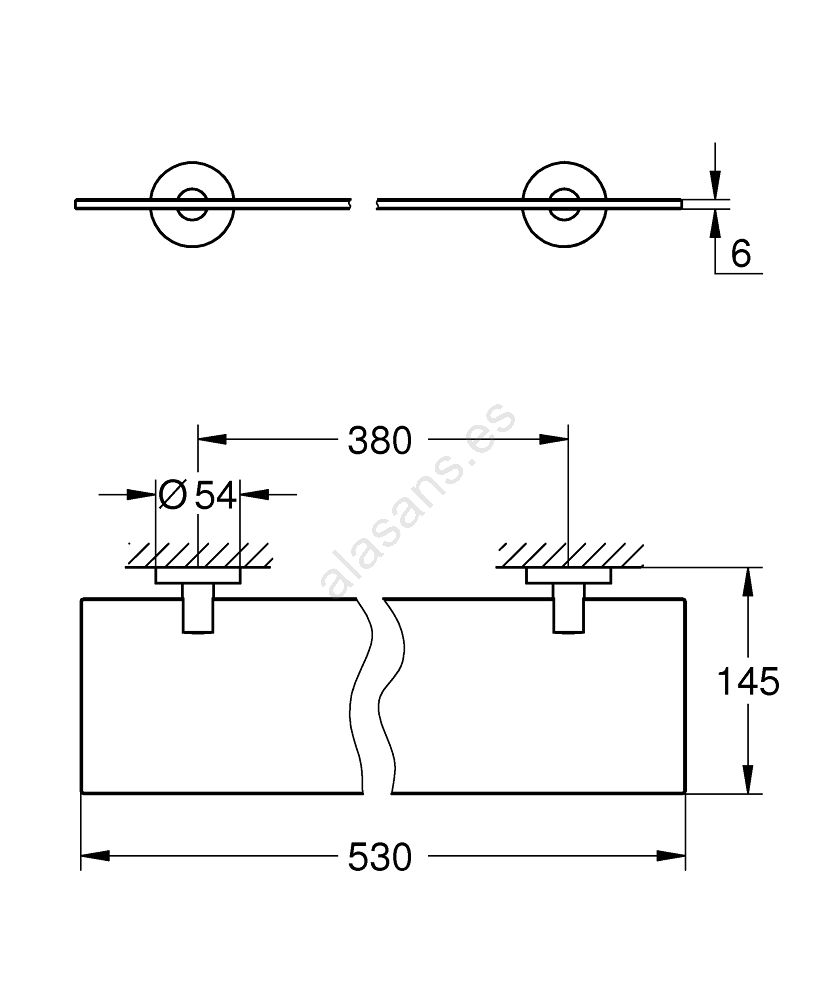 • Longitud 530 mm con longitud útil de 380 mm que ofrece espacio suficiente para sus enseres de baño.
