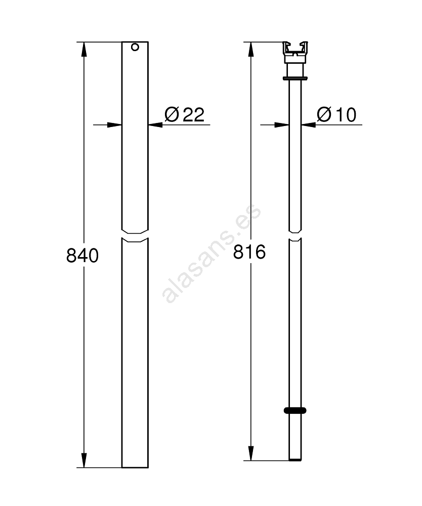 • Para sistemas de bañera/ducha, acortado 60 cm respecto al tubo original.