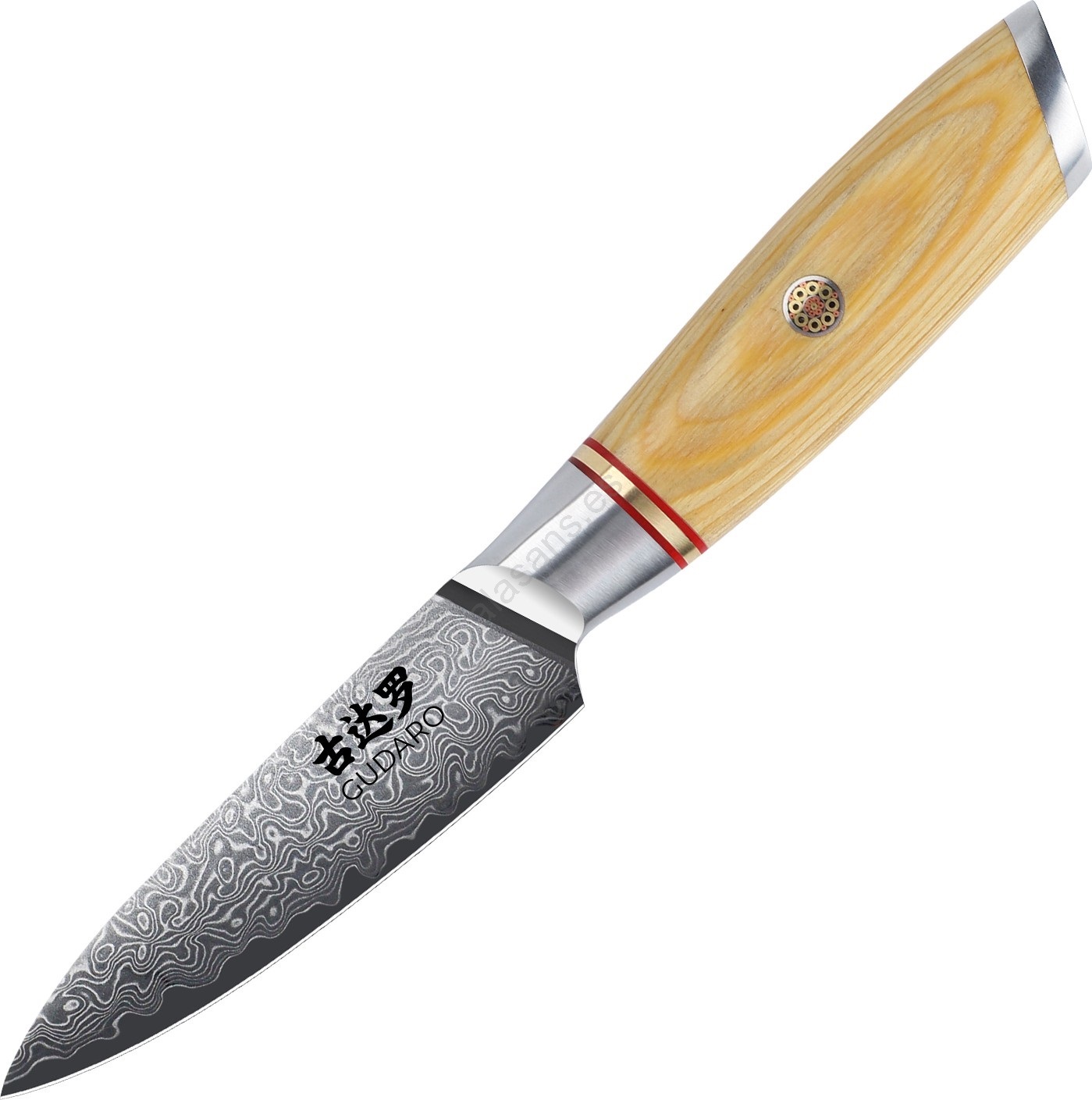 Gudaro - Cuchillo de cocina damasco HIKARI 3,5", 67 capas de acero, longitud de la hoja 9,5 cm