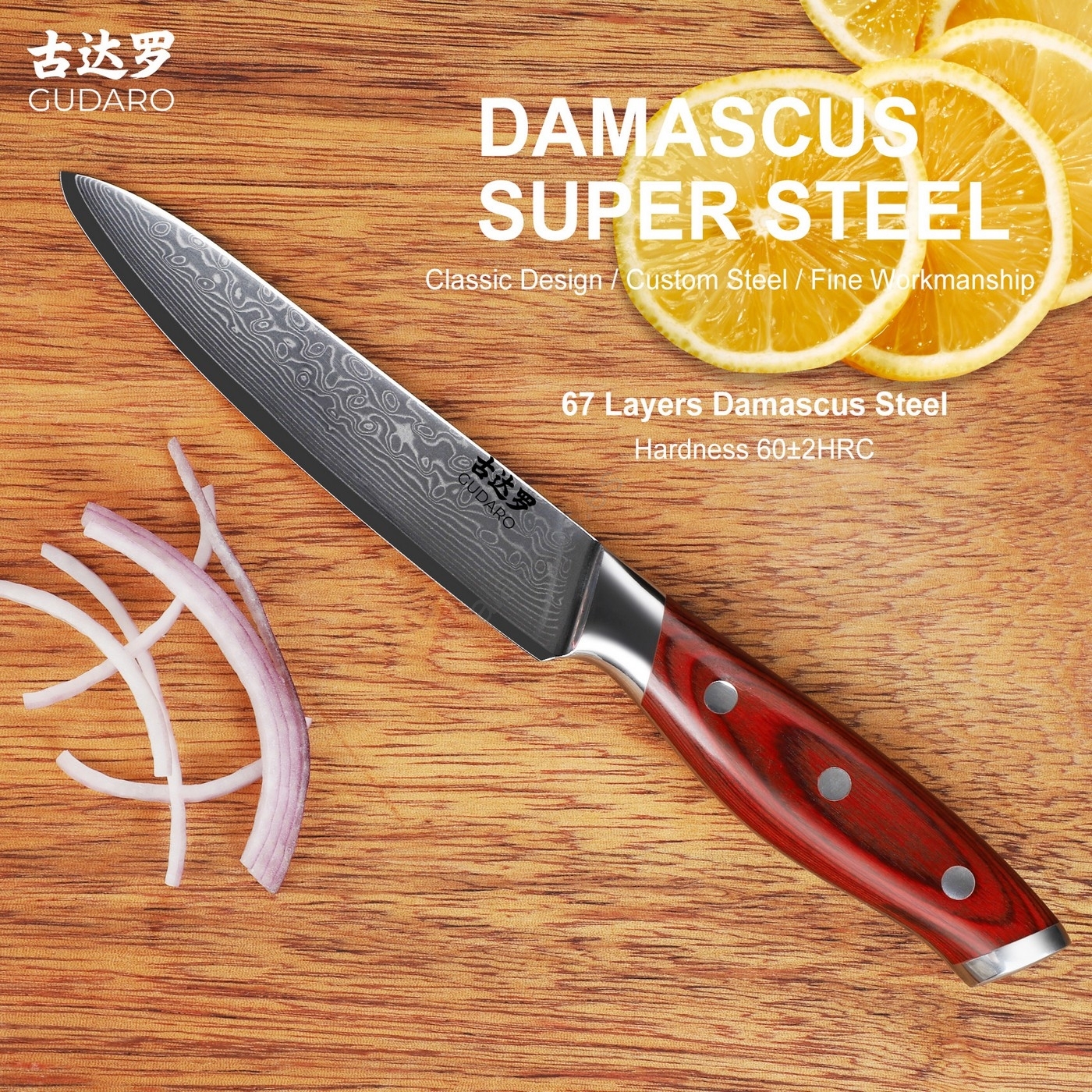 Gudaro - Cuchillo de cocina universal KENSHO 5", de damasco, 67 capas de acero, longitud 12,5 cm