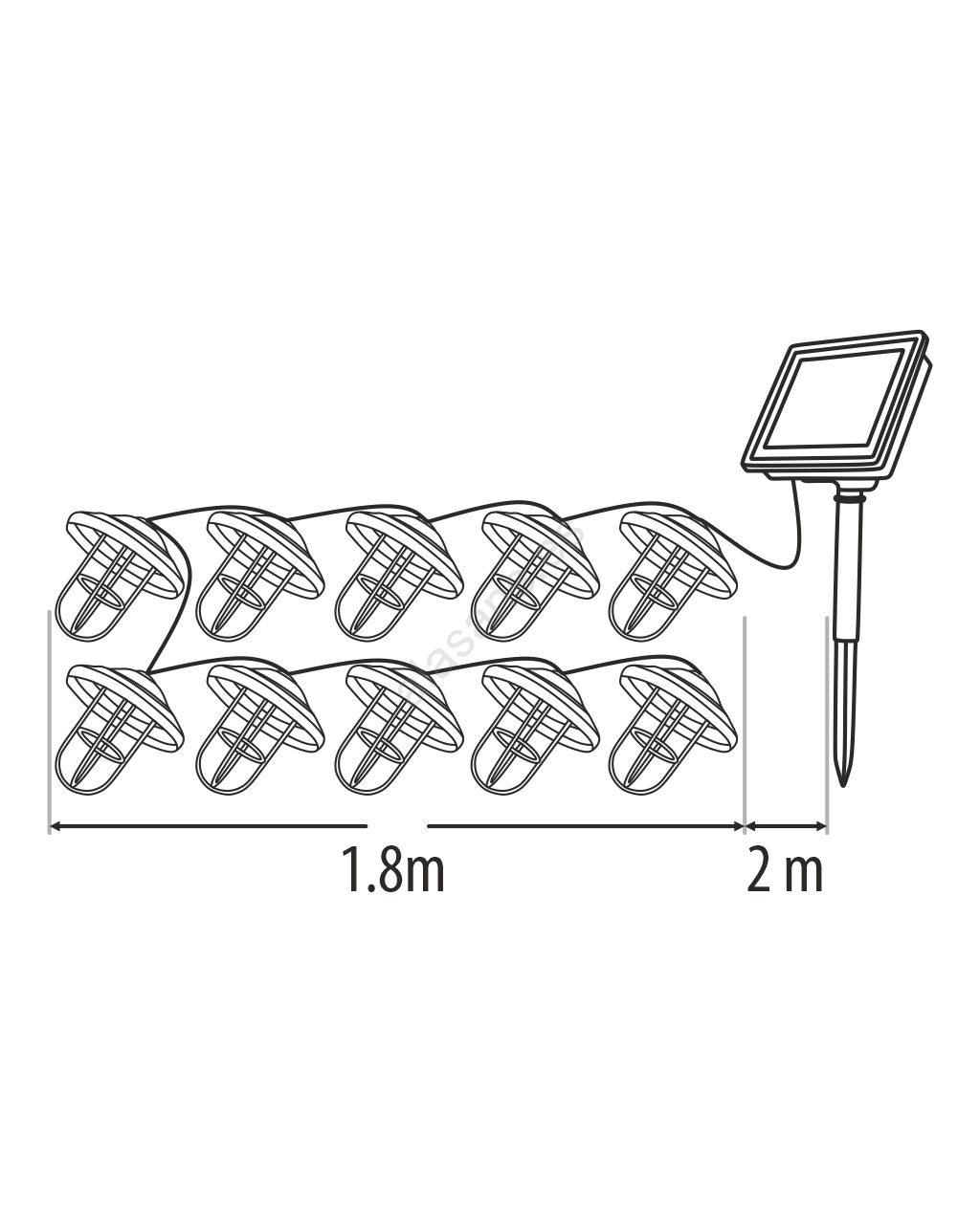 Guirnalda solar LED 10 LEDs, 1,2 V, 300 mAh, 3,8 m, IP44, color cobre