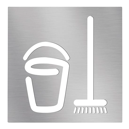 • Ícono de acero inoxidable para señalizar el cuarto de limpieza.