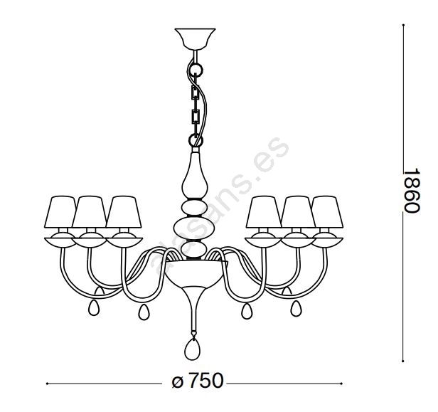 • Ideal Lux - Lámpara colgante con cadena BLANCHE 6xE14/40W/230V diá. 75 cm blanco