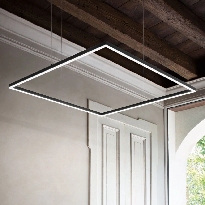 Ideal Lux - Lámpara colgante suspendida por cable LED ORACLE SLIM, 44 W, 230 V, 3000 K, CRI 90, 70×70 cm, negra