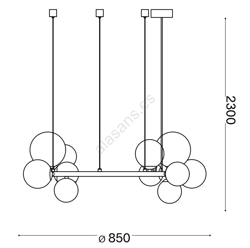 • Ideal Lux - Lámpara LED colgante PERLAGE 14xG9/3W/230V diá. 85 cm negro/ahumado