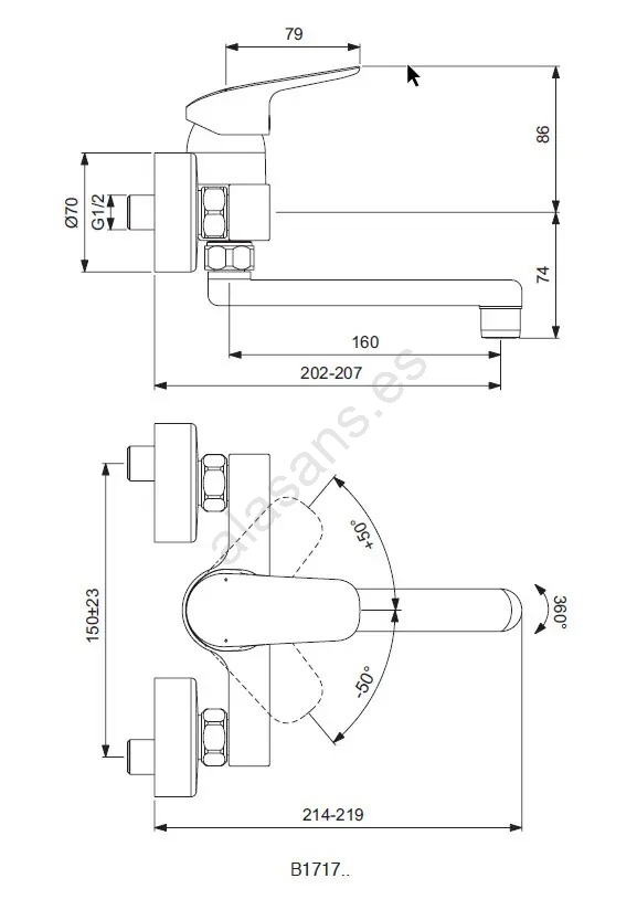 • Las conexiones en S ajustables permiten un alineamiento preciso del grifo durante la instalación en pared.