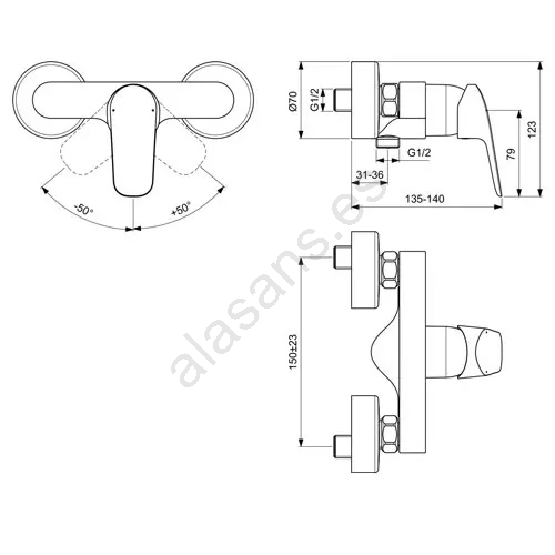 • El grifo monomando de ducha Ideal Standard CeraFlex está diseñado para instalación mural y se suministra sin accesorios.