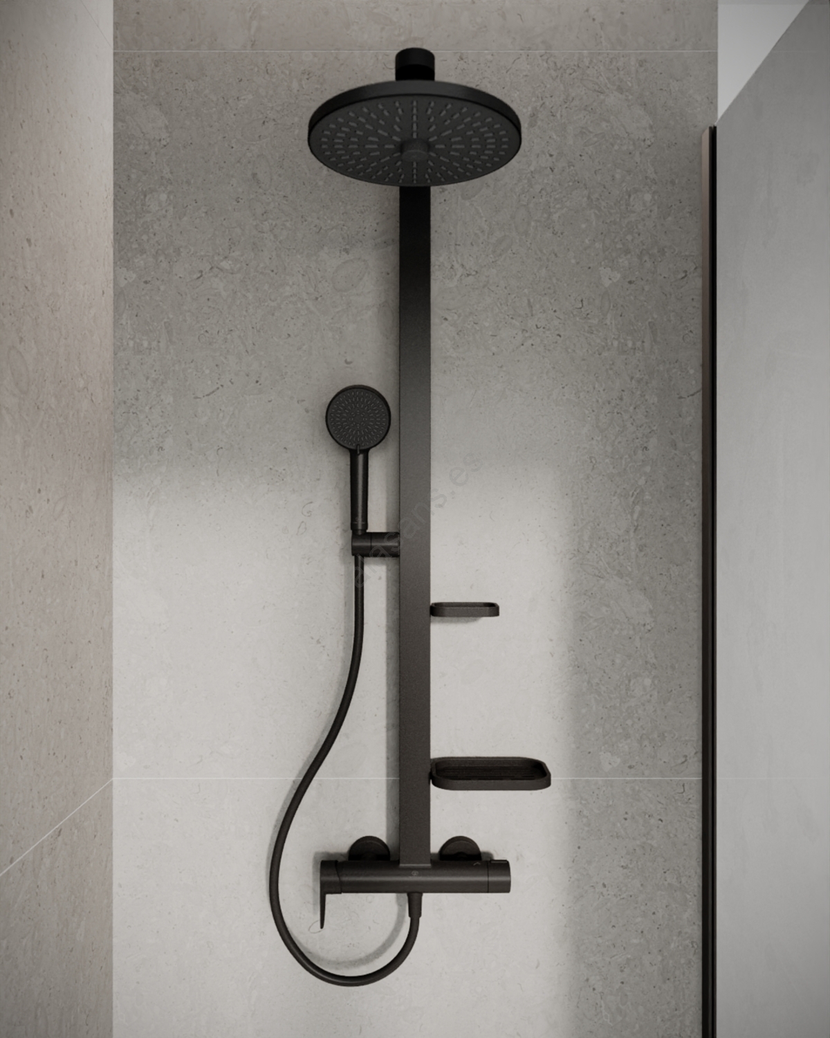• El set de ducha Ceraflow ALU+ ofrece un equipamiento completo para una ducha cómoda y moderna, con un acabado elegante en negro satinado.
