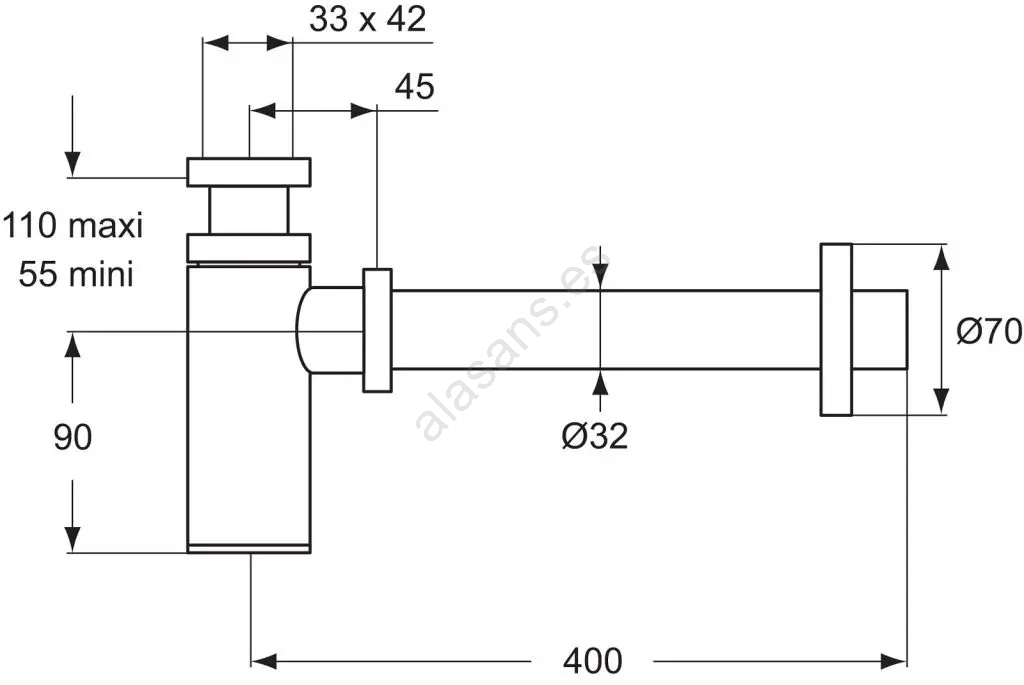 • Se trata de un sifón de diseño (para instalación vista).