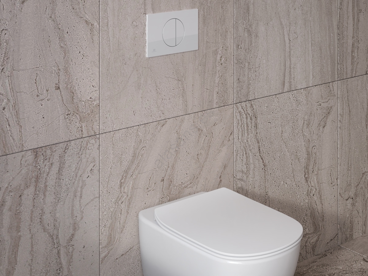 • El inodoro suspendido Ideal Standard Tesi destaca por su diseño moderno y elegante y por funciones avanzadas que garantizan la máxima higiene.
