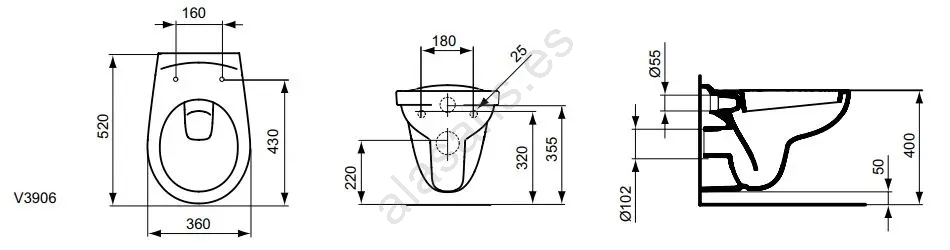 Ideal Standard V390601 - Inodoro suspendido EUROVIT, cerámica, blanco