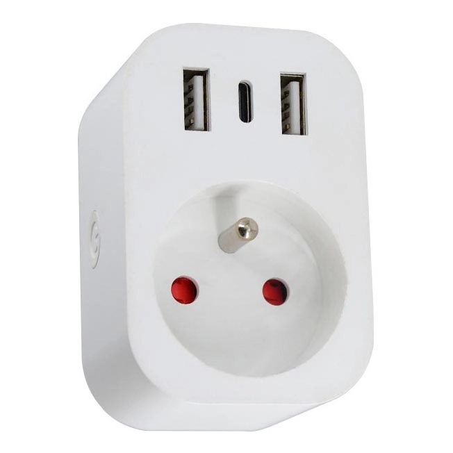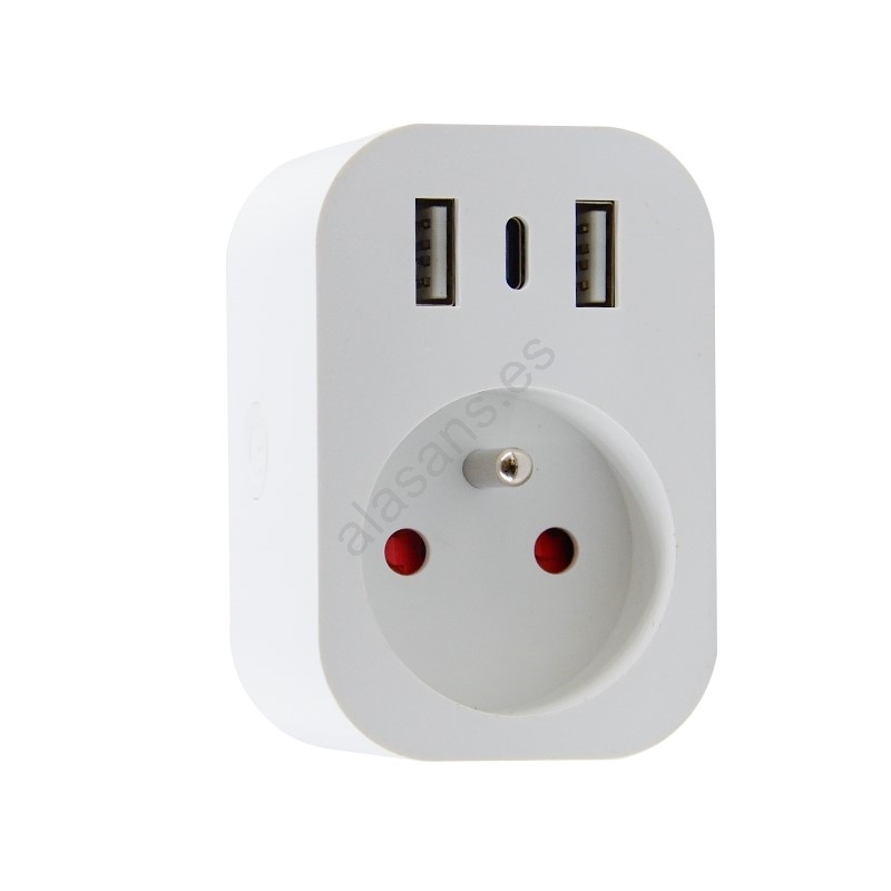• Enchufe confiable que ahorra tiempo y energía, además equipado con prácticos puertos 2x USB y 1x USB-C con especificaciones de 5.0V, 3A, máximo 15W.