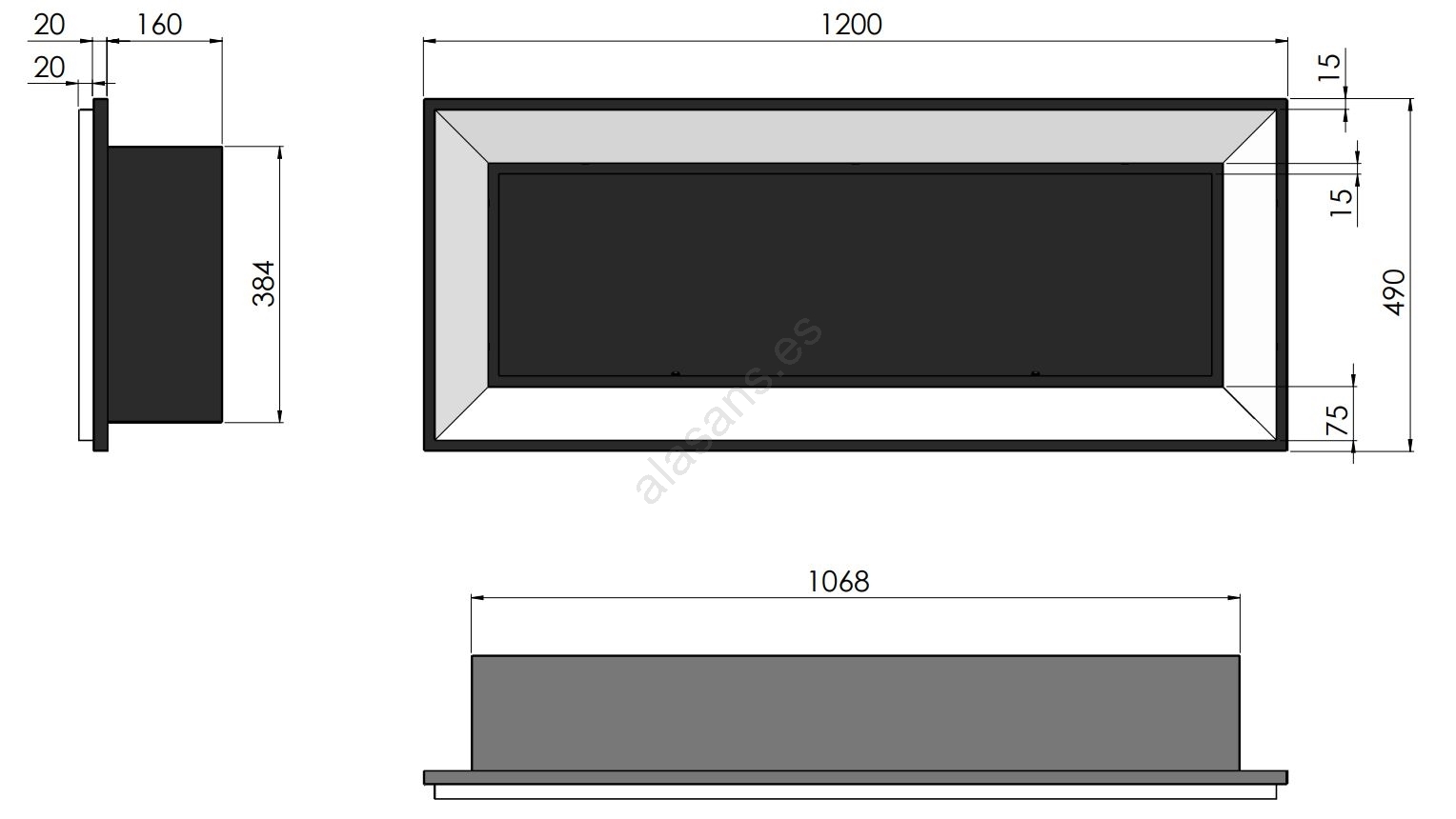 • Dimensiones de la chimenea: 49 x 120 x 20 cm.