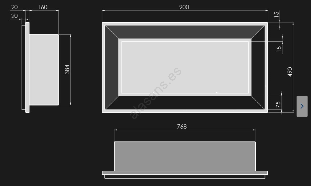 • Dimensiones de la chimenea: 49 x 90 x 20 cm.