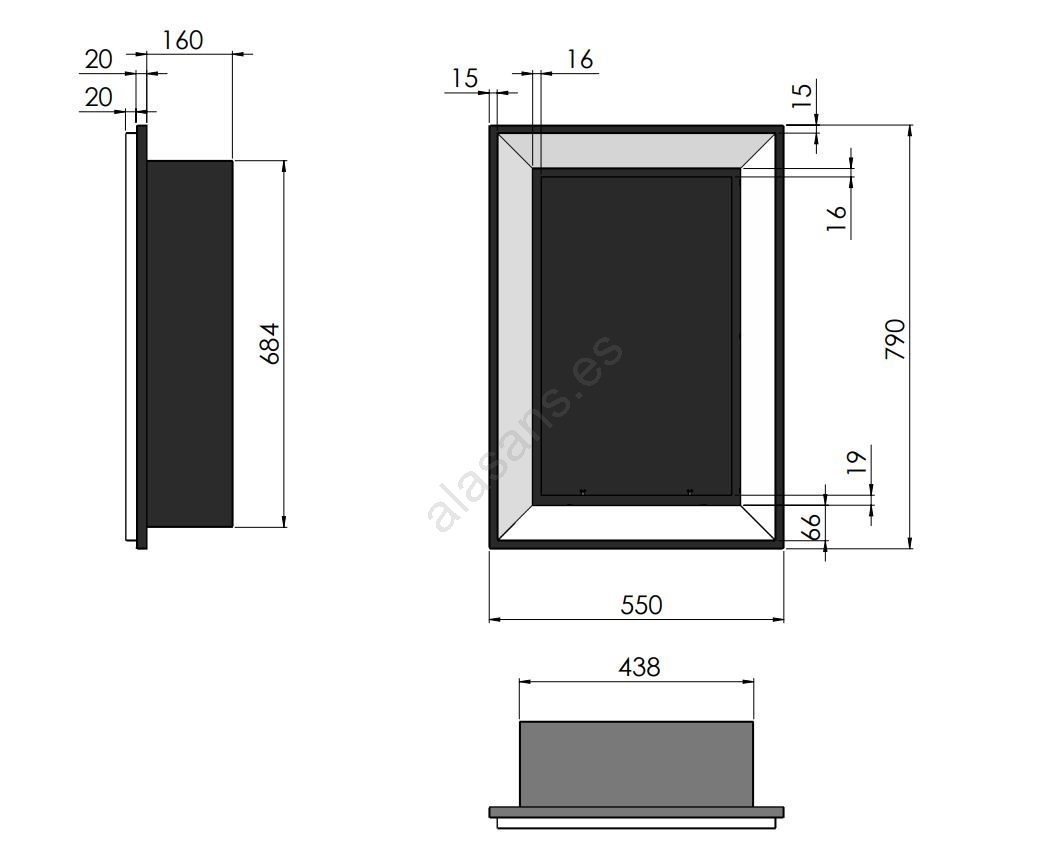 • Dimensiones de la chimenea: 79 x 55 x 20 cm.