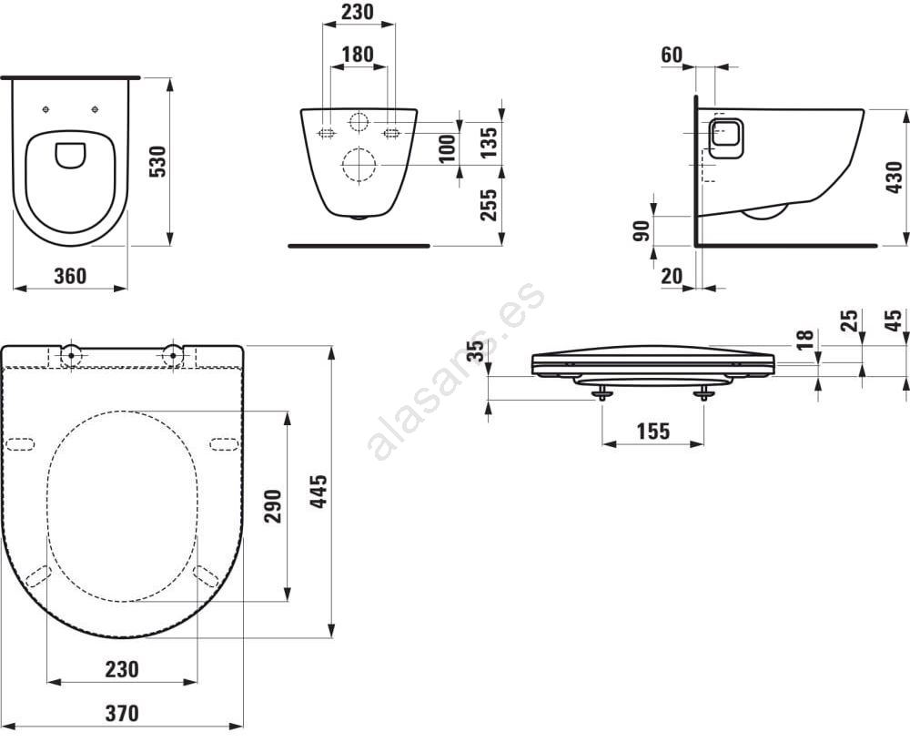 Inodoro suspendido PRO + asiento de inodoro SoftClose PRO + pulsador de descarga DUAL LIS + módulo empotrado + almohadilla aislante
