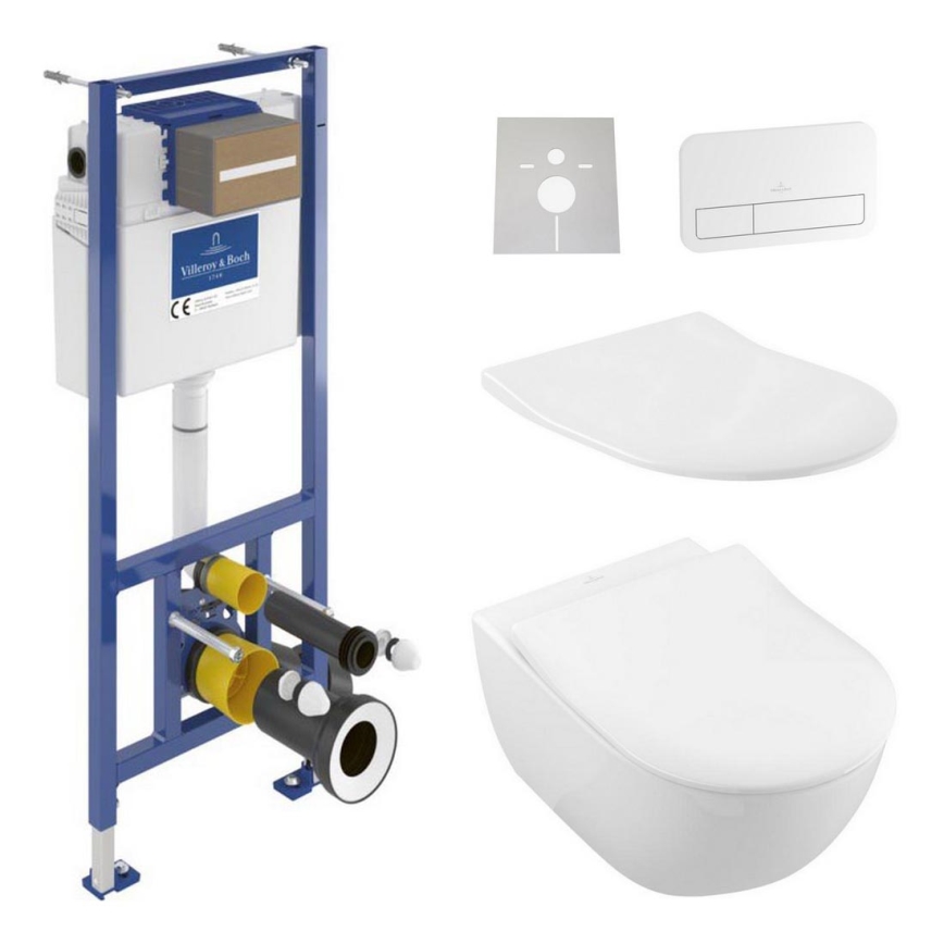 Inodoro suspendido SUBWAY + Asiento de inodoro SoftClose SUBWAY + Botón de descarga VICONNECT + Módulo empotrado VICONNECT + Almohadilla aislante VICONNECT
