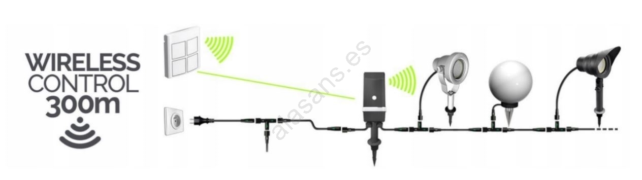 • Con el interruptor, puede controlar la iluminación a una distancia de hasta 300 metros.