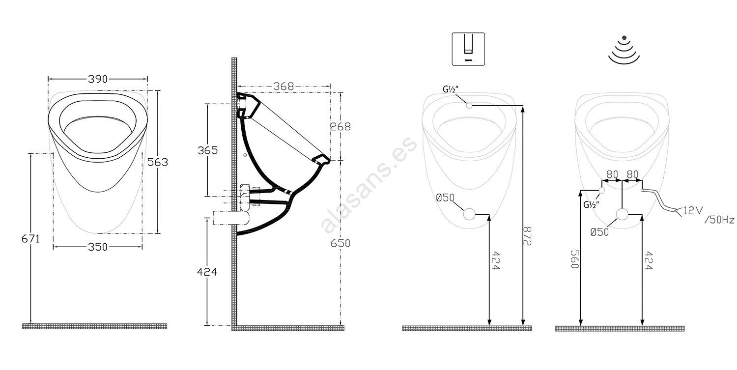 • El urinario cuenta con anclaje oculto y conexión de agua ½".
