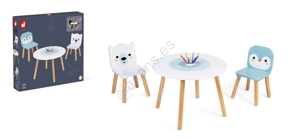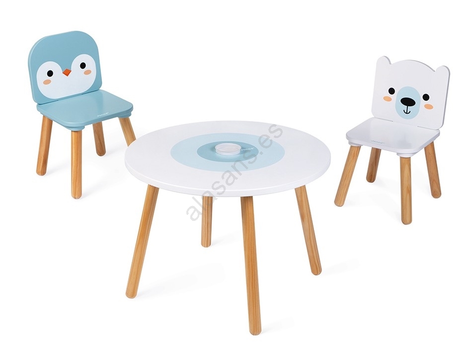 • Este conjunto colorido de mesa y 2 sillas con motivos de animales polares es el complemento ideal para la habitación infantil.
