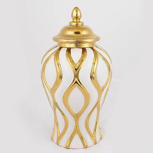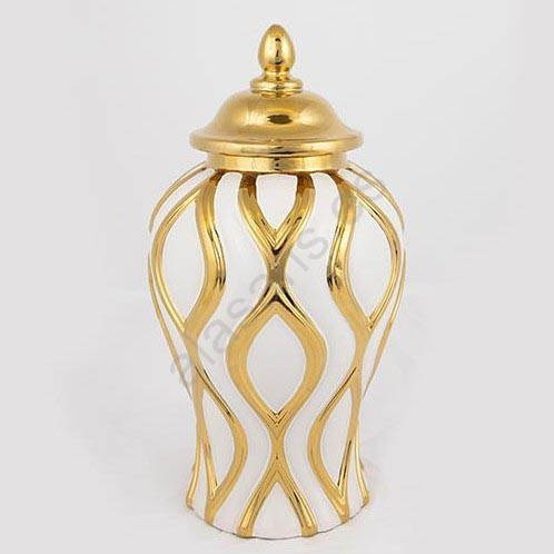 Tarro de cerámica 30,6x16,2 cm dorado/blanco