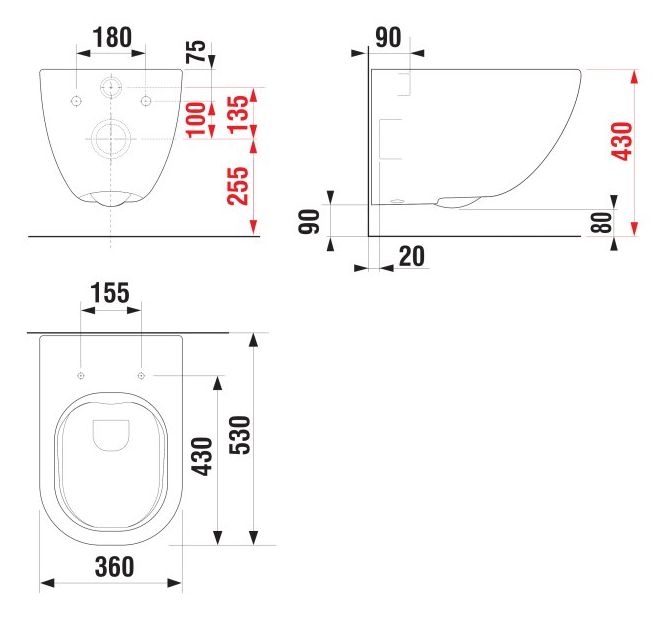 • Inodoro suspendido sin el borde de descarga tradicional.