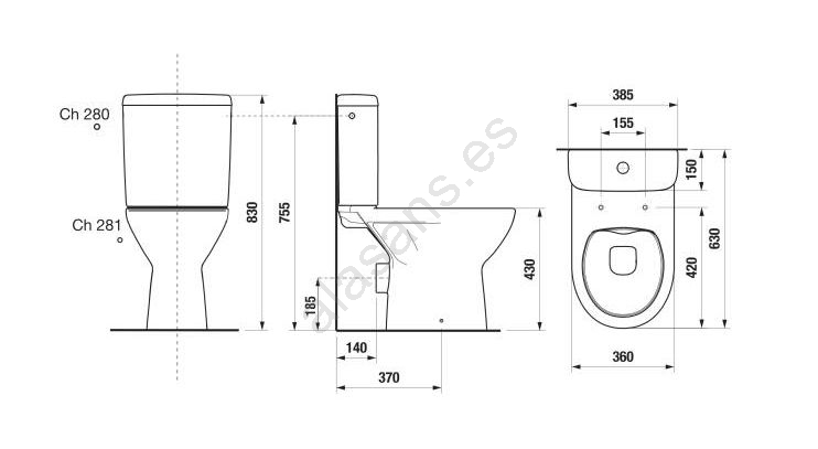 • Inodoro de suelo con cisterna cerámica.