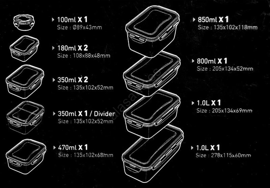 • La robusta estructura de plástico y las tapas herméticas con cuatro clips garantizan una frescura duradera y la conservación segura de los alimentos.