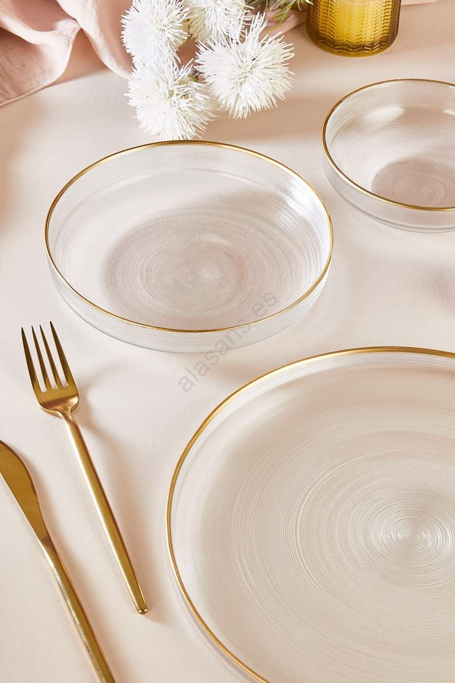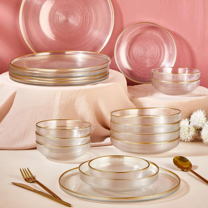 Juego de 18 piezas de cristal transparente con detalles dorados