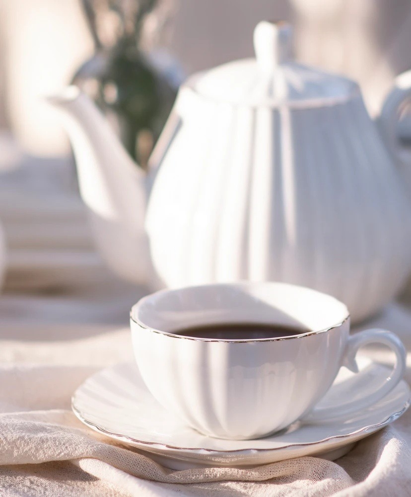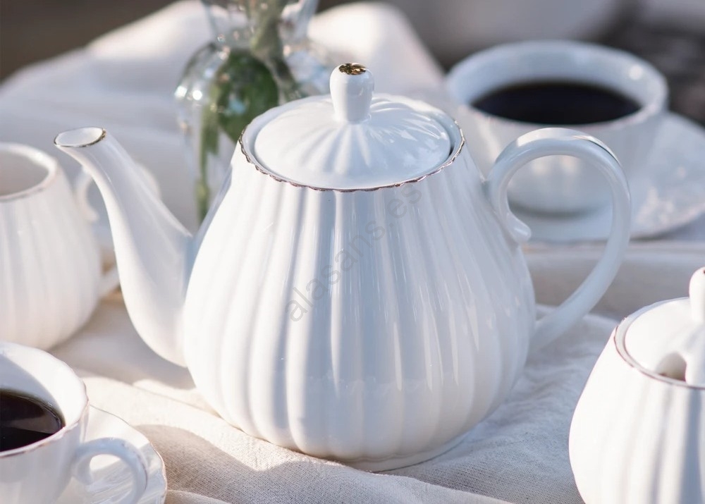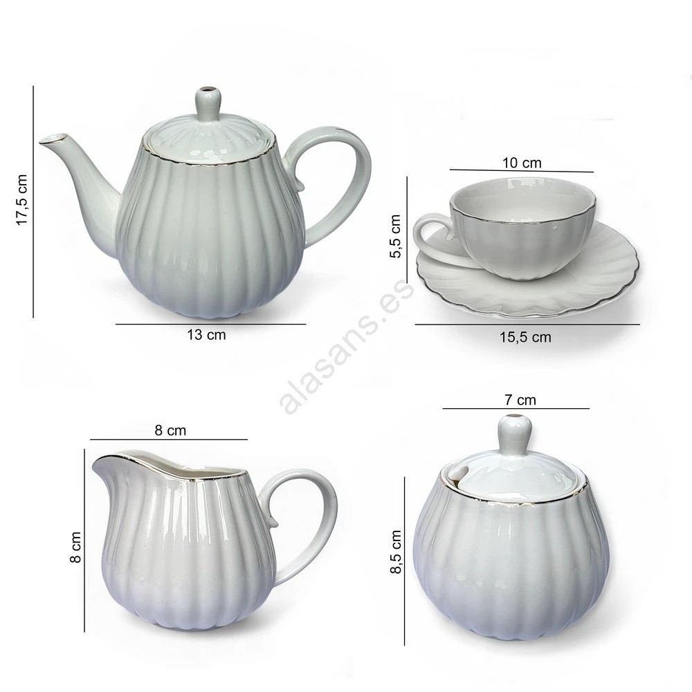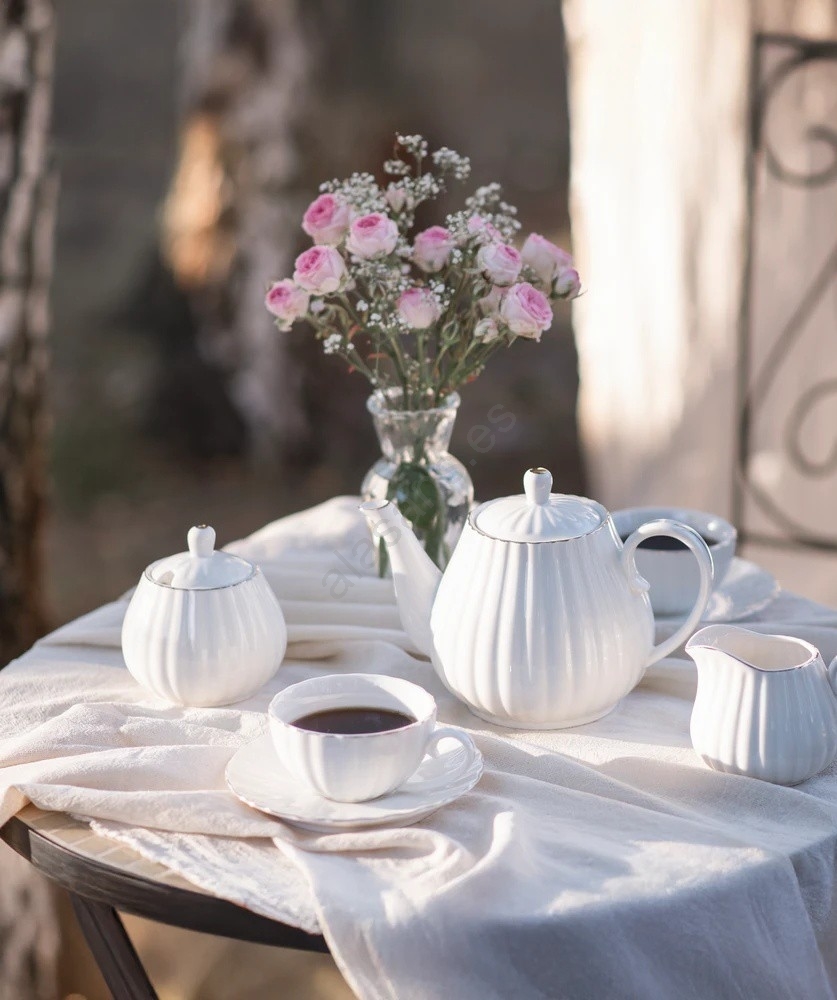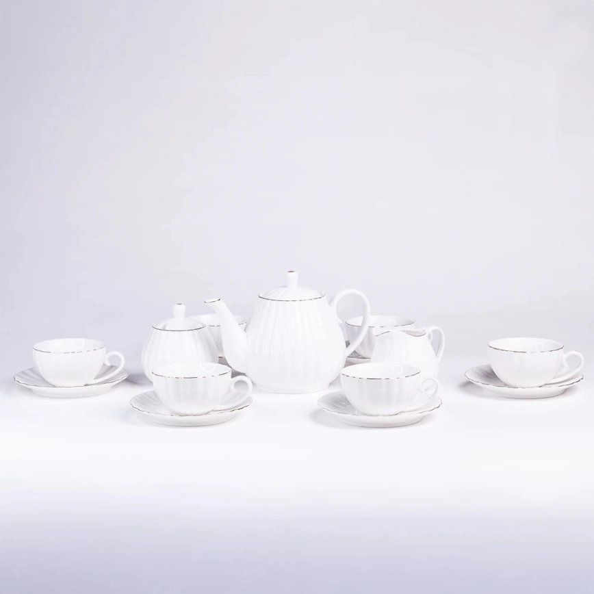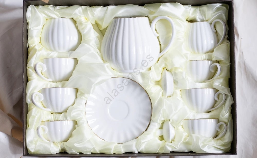Juego de café de porcelana, 15 piezas, blanco