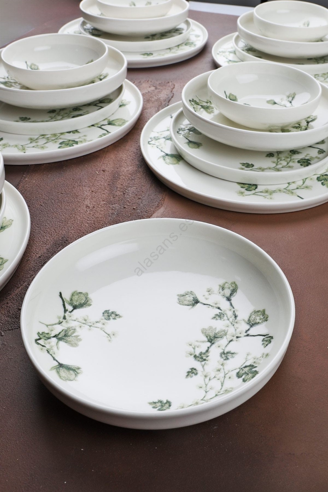 Juego de vajilla 24 piezas blanco/verde/porcelana