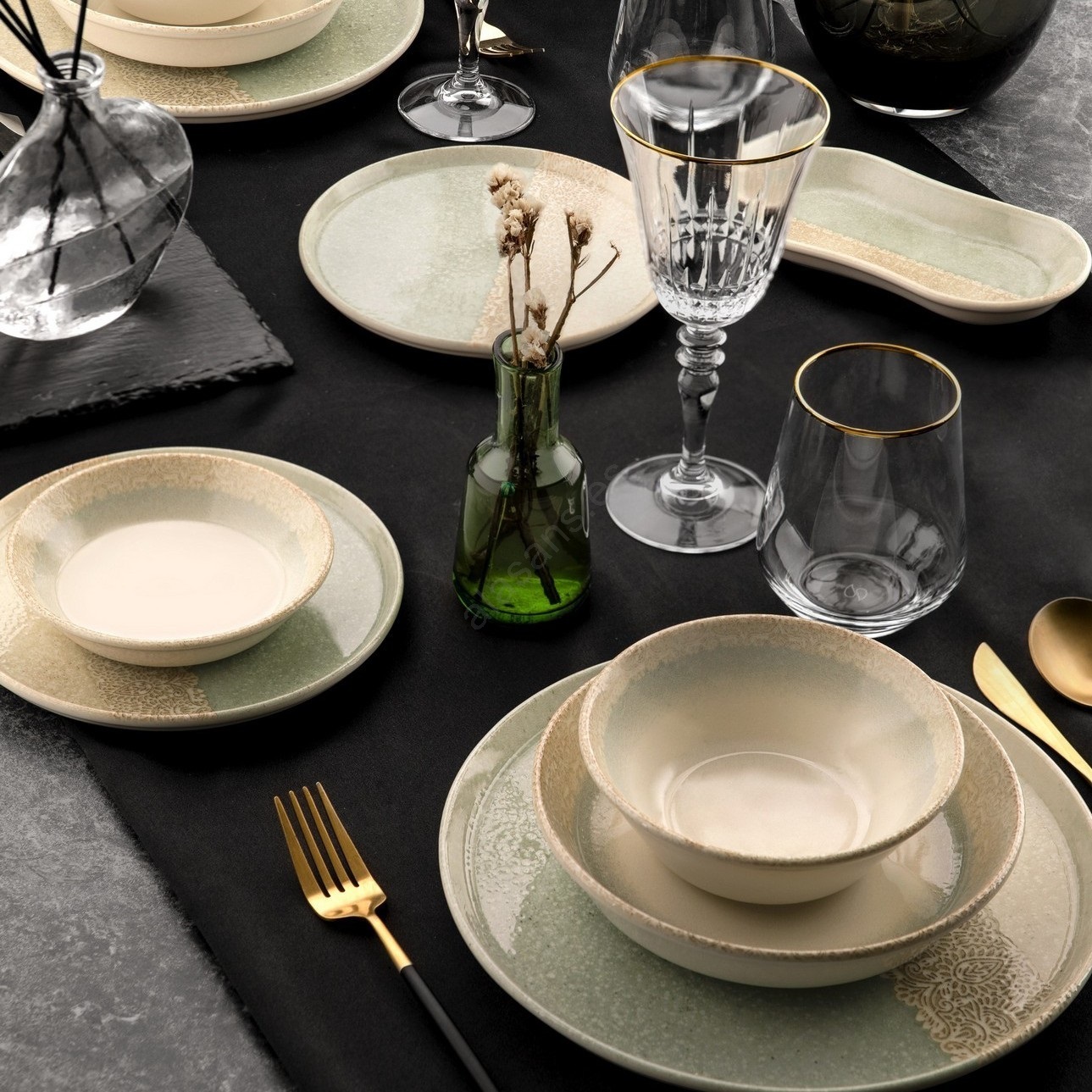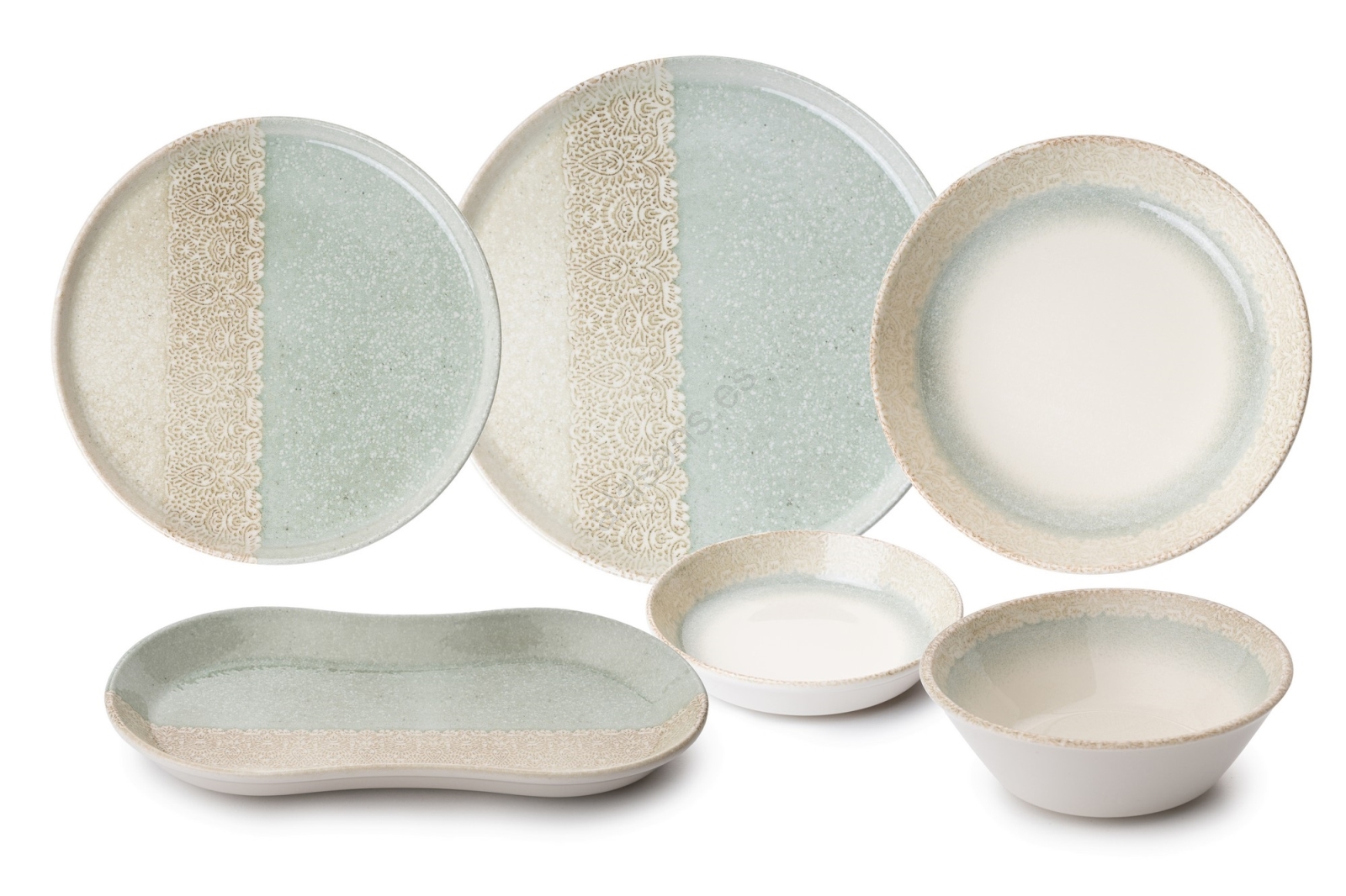 Juego de vajilla 27 piezas beige/verde/porcelana