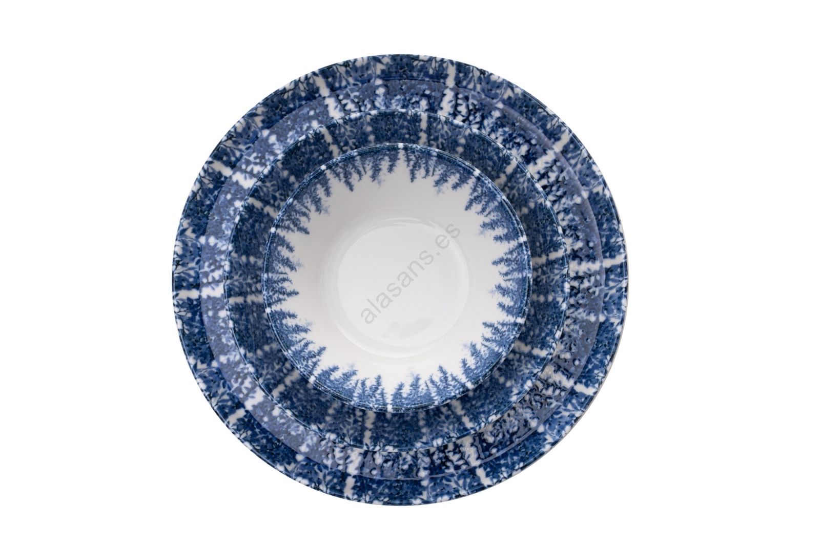 Juego de vajilla de 12 piezas blanca/azul/porcelana
