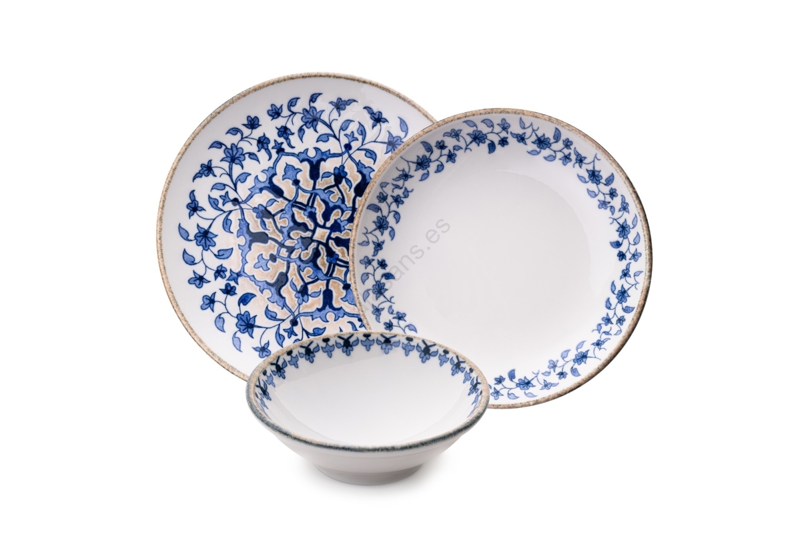 Juego de vajilla de 18 piezas blanco/azul/porcelana