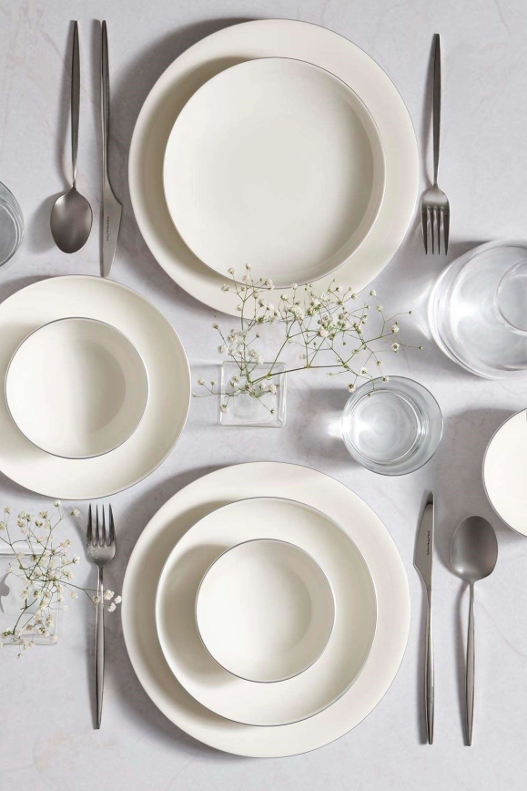 Juego de vajilla de 18 piezas, blanco/plateado, de porcelana