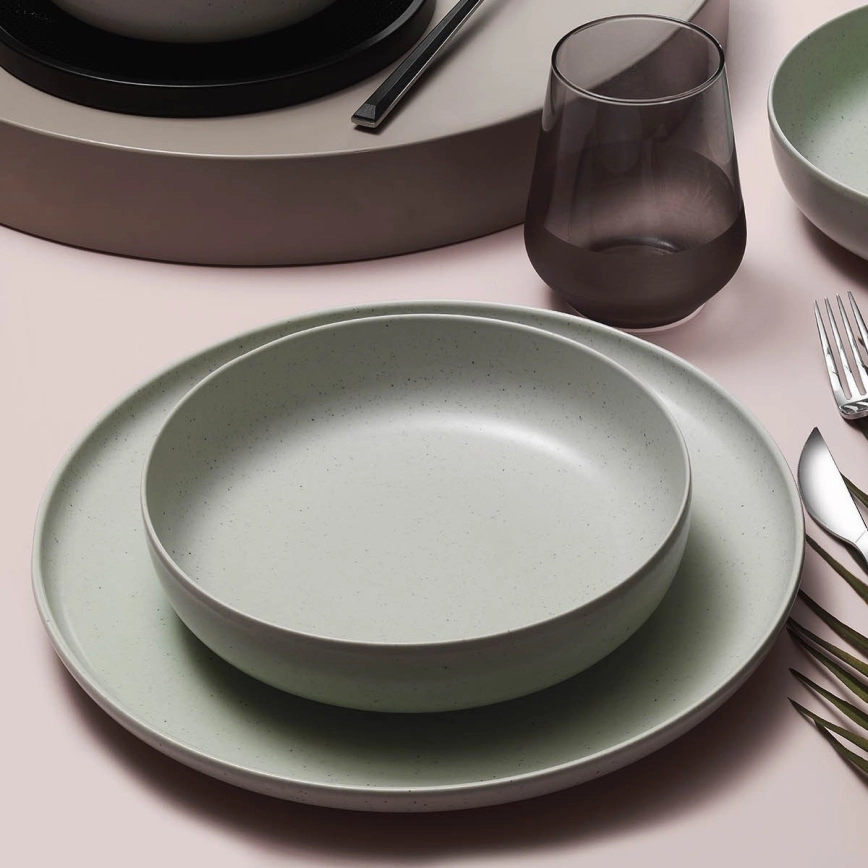 Juego de vajilla de 18 piezas en porcelana, color verde