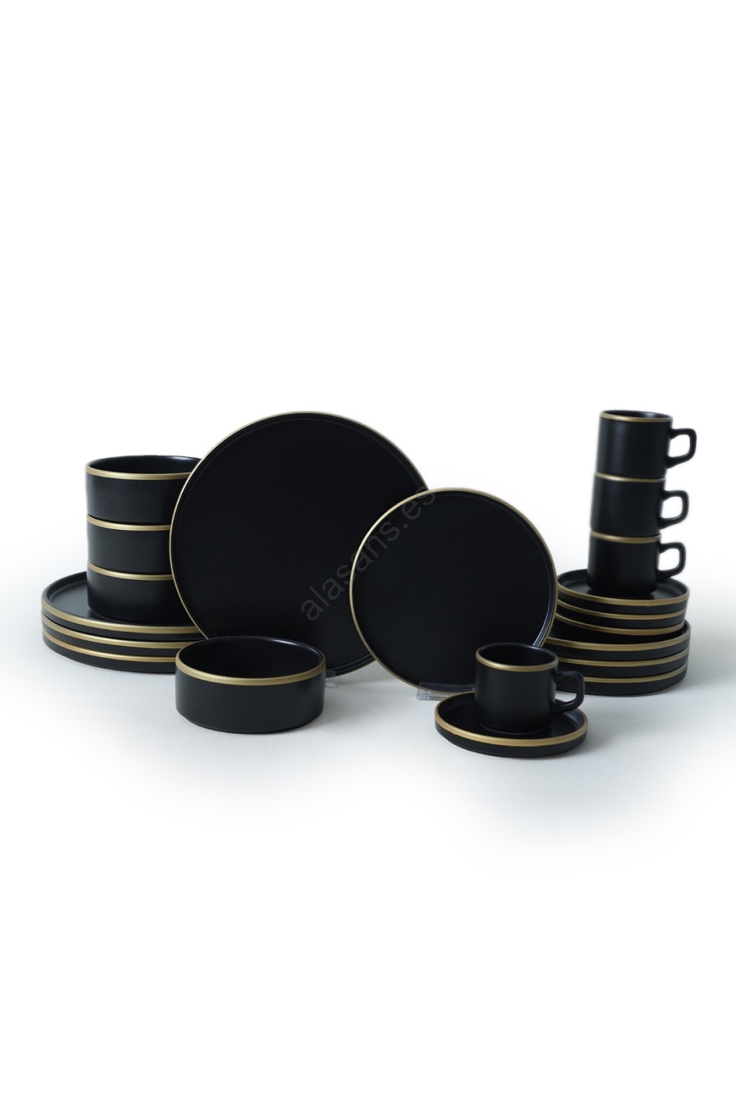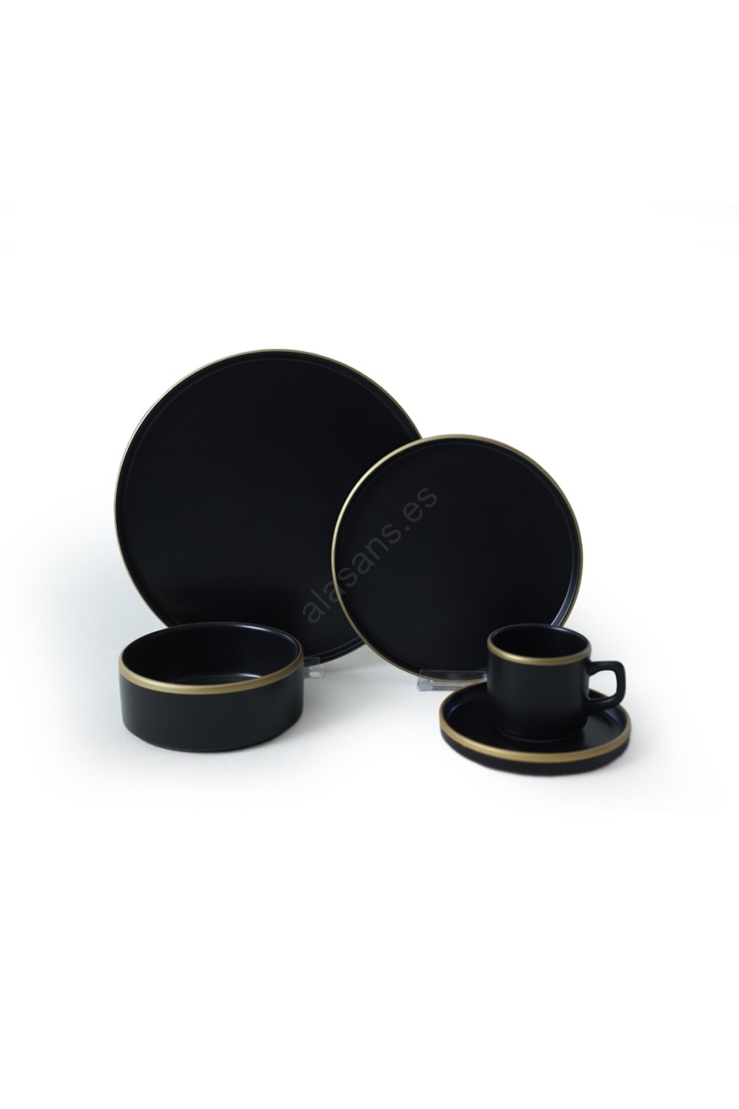 Juego de vajilla de 20 piezas, negro/dorado, gres
