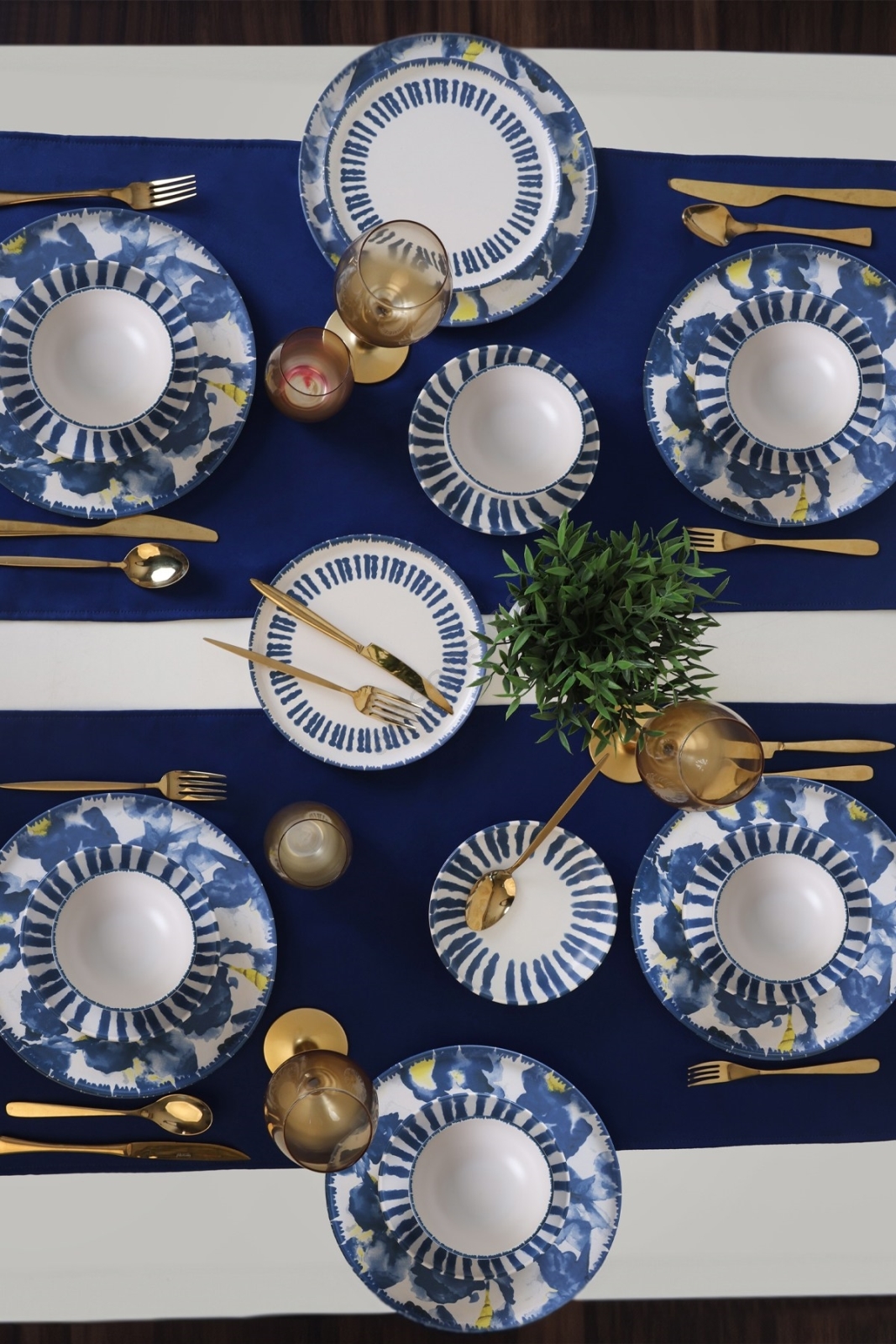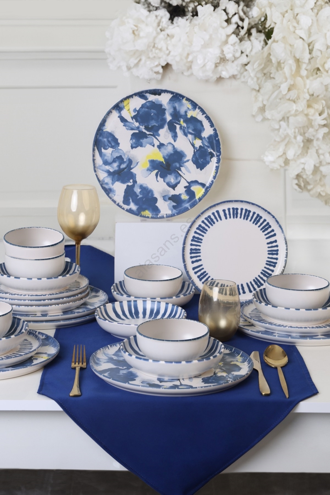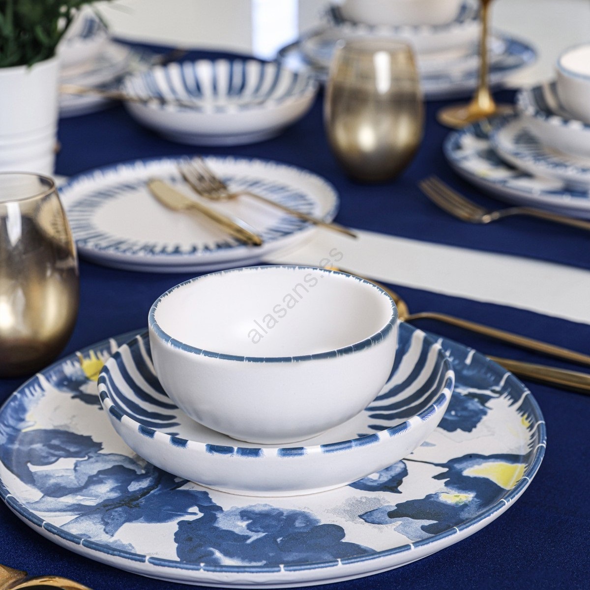Juego de vajilla de 24 piezas blanco/azul/loza